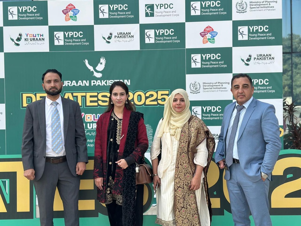 Faculty members from the Department of Management Sciences — Ms. Asma Khattak, Ms. Humaira Mumtaz, Mr. Muazam Ali, and Mr. Muhammad Kashif Khan — are representing the university as judges at the URAAN National Debates Competition, organized under the umbrella of the Ministry of Planning, Development & Special Initiatives.